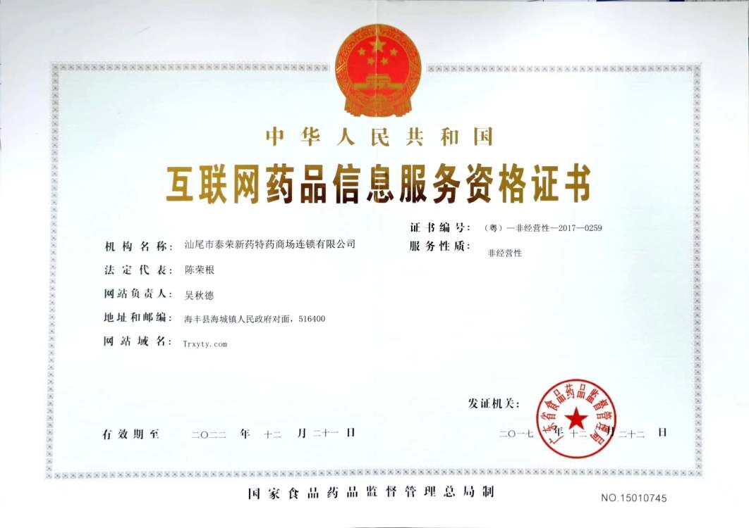 互聯(lián)網(wǎng)藥品信息服務(wù)資格證書 :(粵)一非經(jīng)營(yíng)性- -2022- -0265